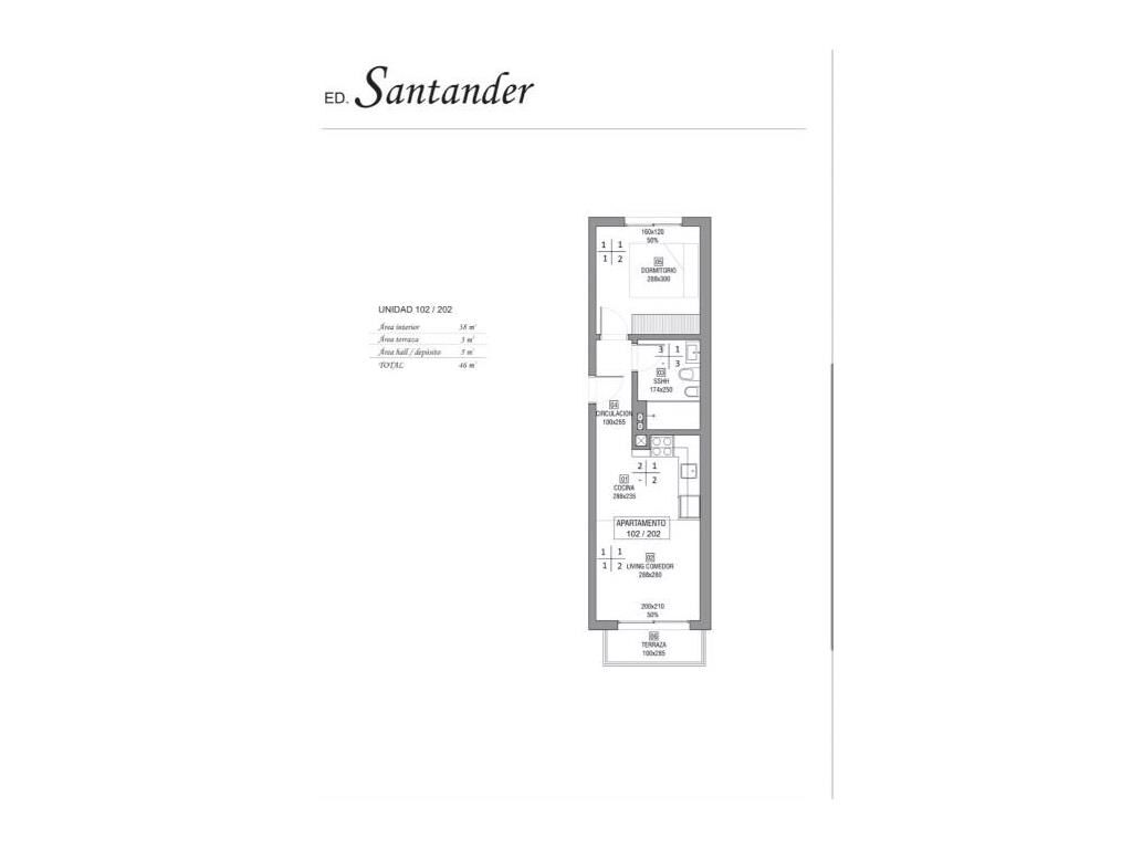 Apartamentos de 46.m2 living comedor con balcón al frente. Cocina integrada con placares aéreos y bajo mesada ., Baños amplios ., muy buenas terminaciones en aberturas pisos y revestimientos