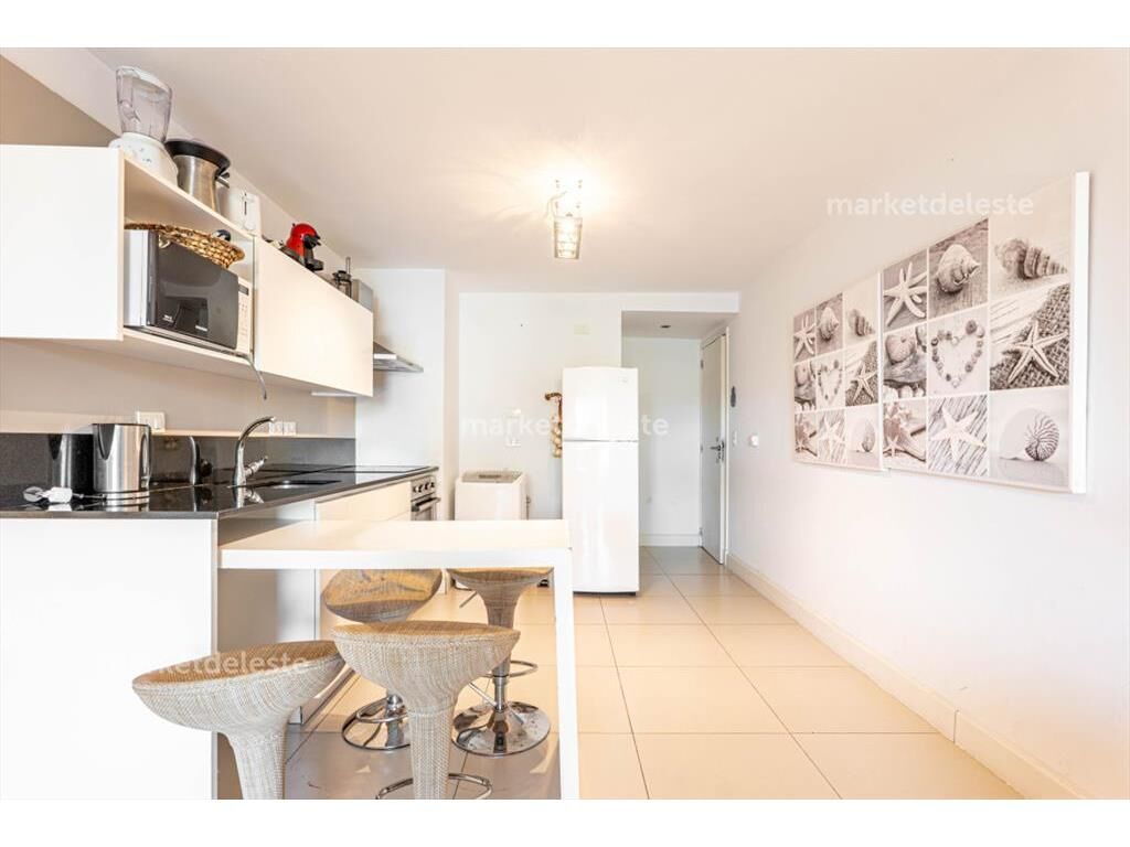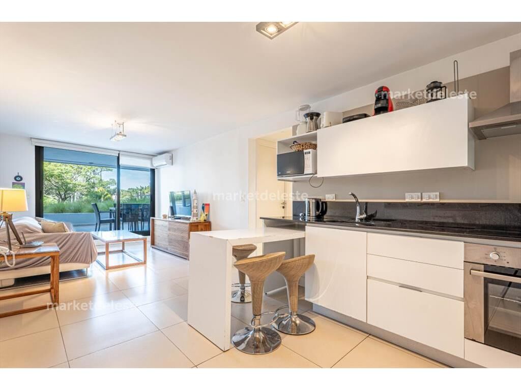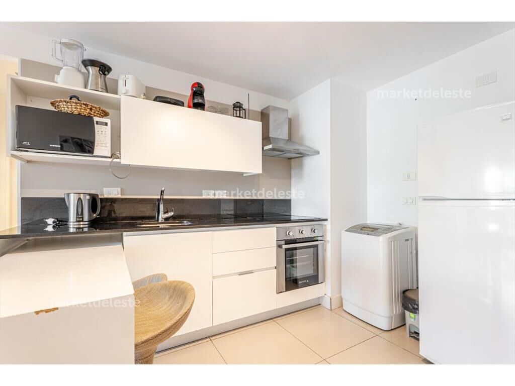El apartamento se entrega totalmente equipado con mobiliario de calidad. Incluye garaje amplio para auto o camioneta grande.