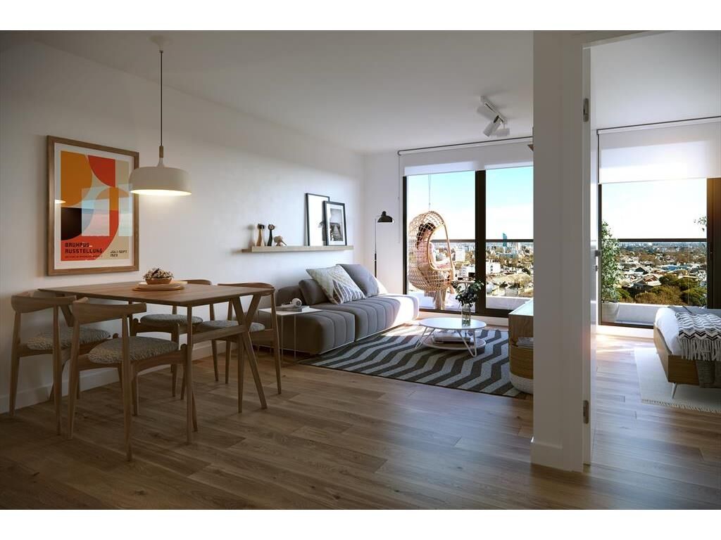 Proyectado en 11 pisos con 98 apartamentos monoambientes, 1 y 2 dormitorios.
